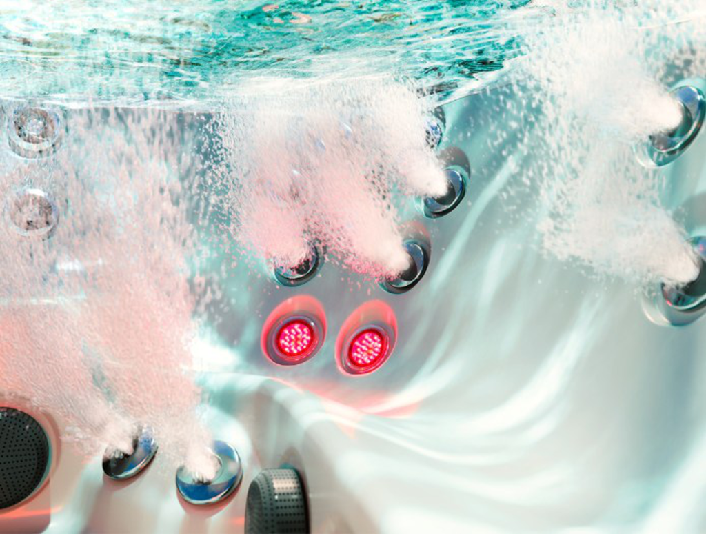 A J-13 PowerPlay egyszerre mini úszómedence és pezsgőfürdő: reggel tempózhat az egyenletes ellenárammal, este pedig ugyanebben a térben lazít a masszázsülésekben.